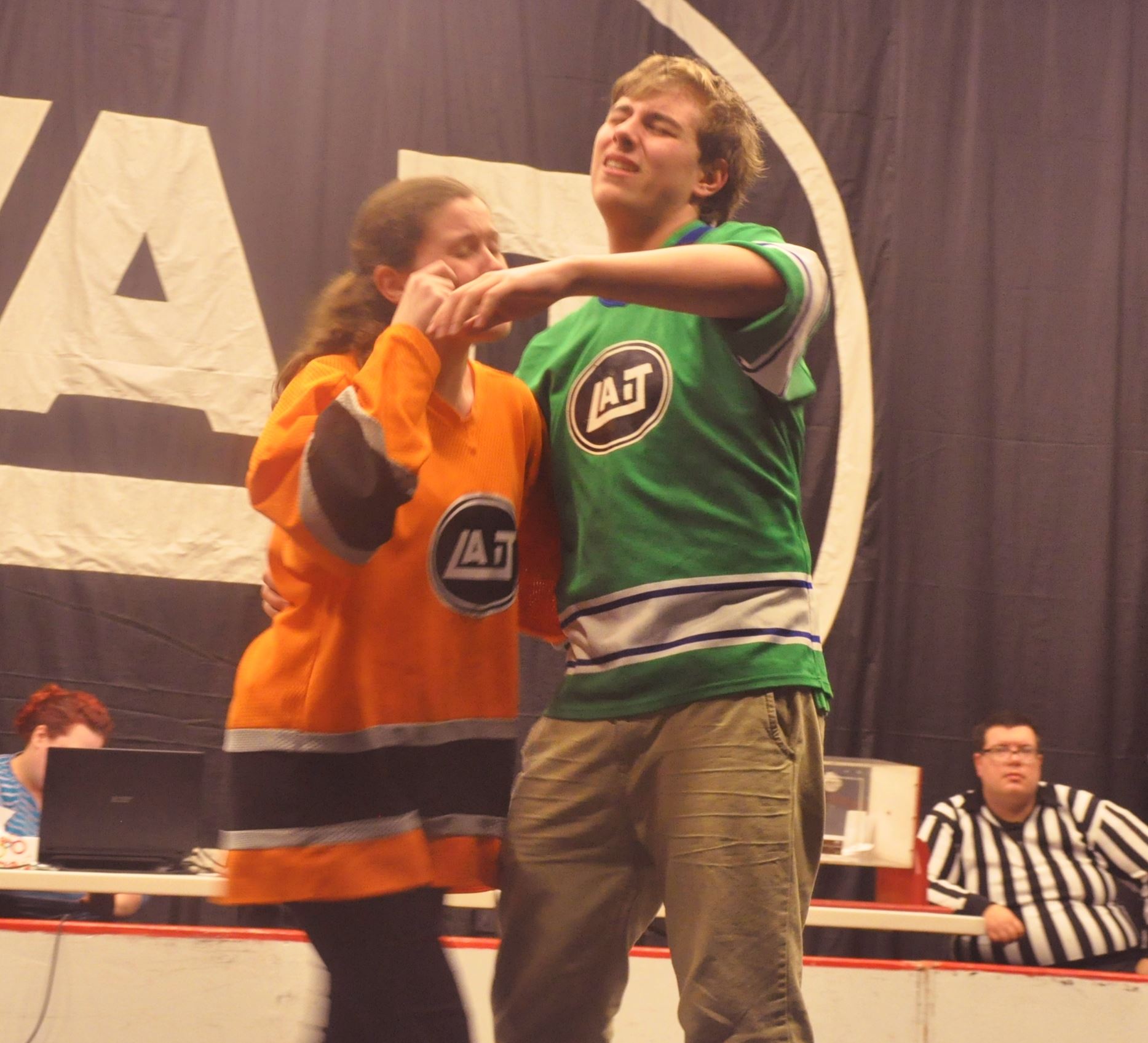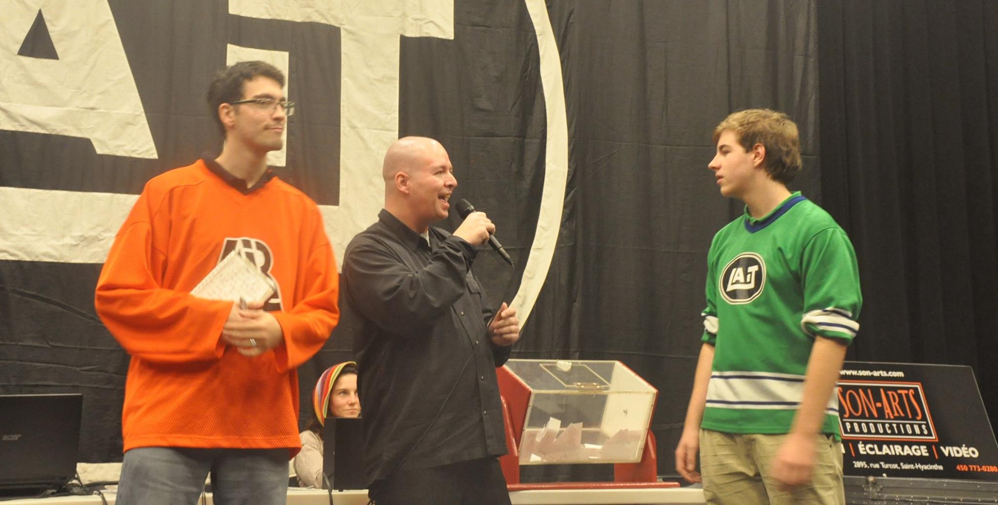 11 février 201611 février 2016productionsles3coupsLaisser un commentaire sur Quelques photos du match du 7 novembre 2015 Quelques photos du match du 7 novembre 2015 Plus de 80 spectateurs ont assisté au 2e match de la saison régulière de la LAIT au Centre culturel Humania. Bravo aux Verts pour leur victoire et aux Oranges pour leur belle performance! En lien